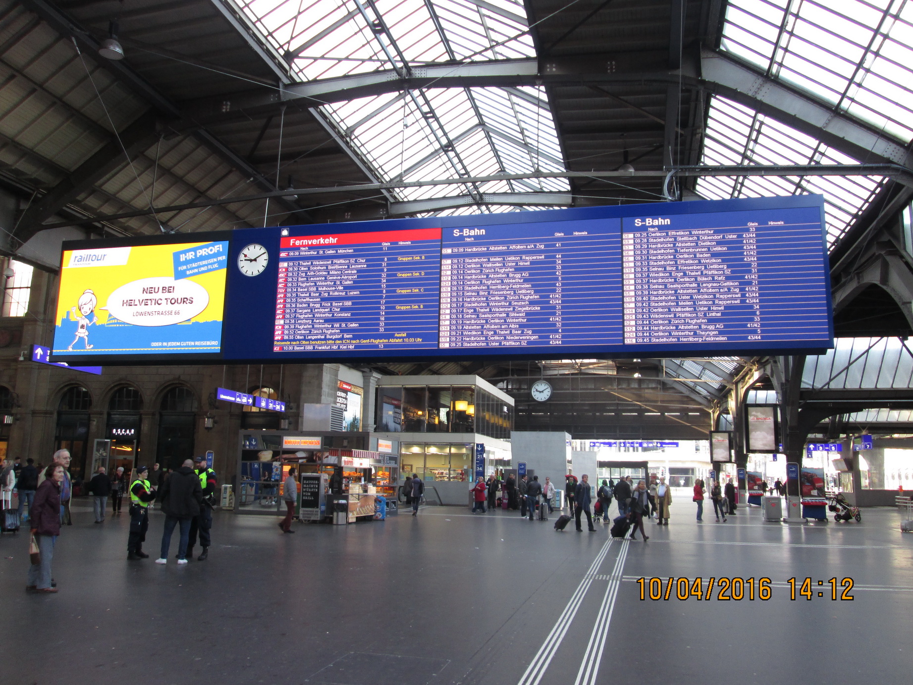 อันนี้คือบอร์ดตารางเวลารถไฟหลักของสถานี Zurich HB ... คนต่างถิ่นเห็นแวบแรกแล้วอึ้งไป 5 นาทีได้ แต่ใจเย็นๆ จริงๆแล้วไม่มีอะไรเลย