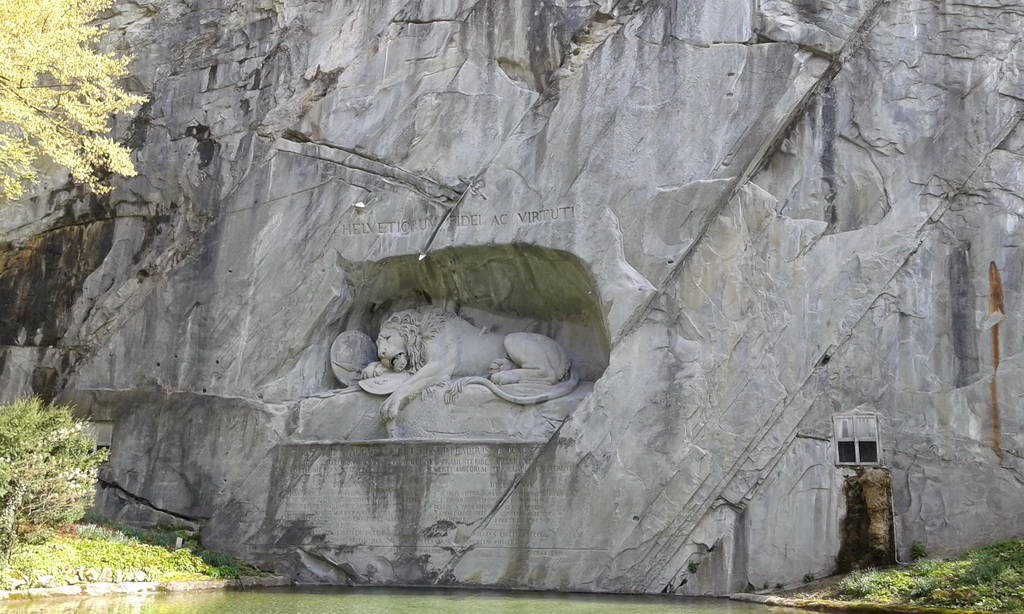 Löwendenkmal อนุสาวรีย์สิงโต ซึ่งสร้างขึ้นเพื่อเป็นการรำลึกถึงทหารหาญชาวสวิสผู้ซื่อ สัตย์ต่อหน้าที่