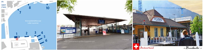 จากท่าเรือ Vitznau จะอยู่ติดกับ สถานีรถไฟ Rigi Bahn ที่ใช้ขึ้นเขา Rigi Kulm ให้ขึ้นรถไฟสีแดง