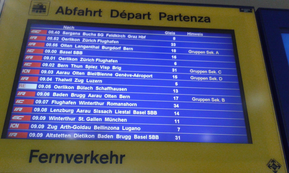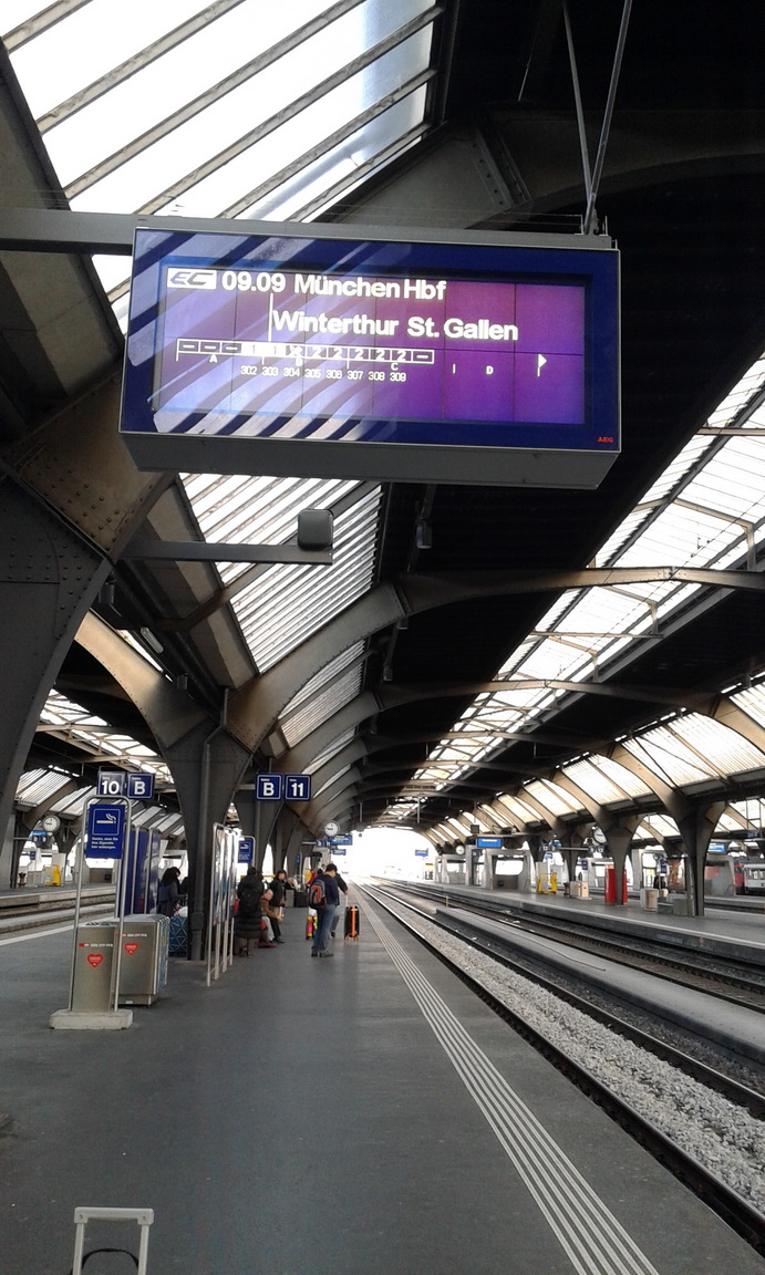แต่ผมขึ้นที่ สถานี Zurich HB ครับ จากป้ายจะเห็นว่ารถไฟออกตอน 09.09 น. ที่ชานชาลาเบอร์ 11