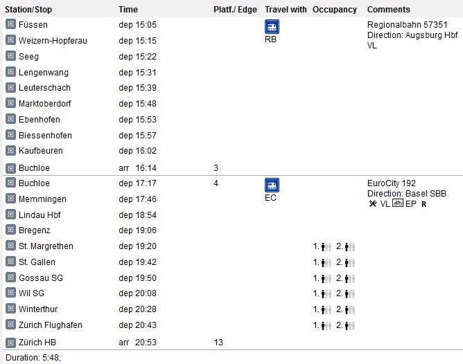 ดังนั้นขากลับ ... ผมต้องซื้อตั๋วจาก Buchloe ไป St.Margrethen (เมืองชายแดนสวิส) -> ซื้อตั๋ว