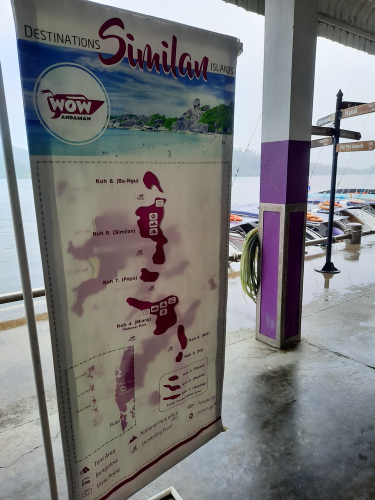 - เกาะแปด (เกาะสิมิลัน) = มีหินเรือใบ ขึ้นไปชมวิวอ่าวเกือก (Donald Duck Bay)