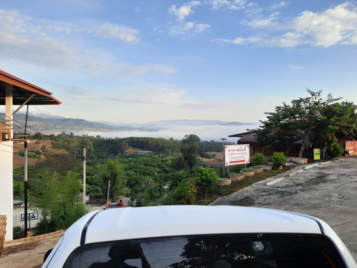 - ขากลับจากจุดชมวิวทะเลหมอกหยุนไหล รถกระบะที่เราจ้างเหมา จะมาจอดให้ที่นี่