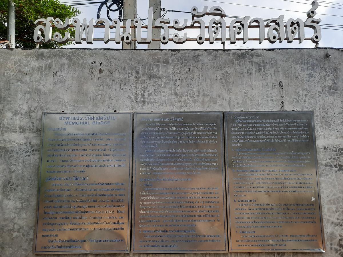 - สะพานแห่งนี้เป็นประตูสู่อำเภอปาย ถูกสร้างขึ้นในสมัยสงครามโลกครั้งที่ 2 โดยกองทหารประเทศญี่ปุ่น