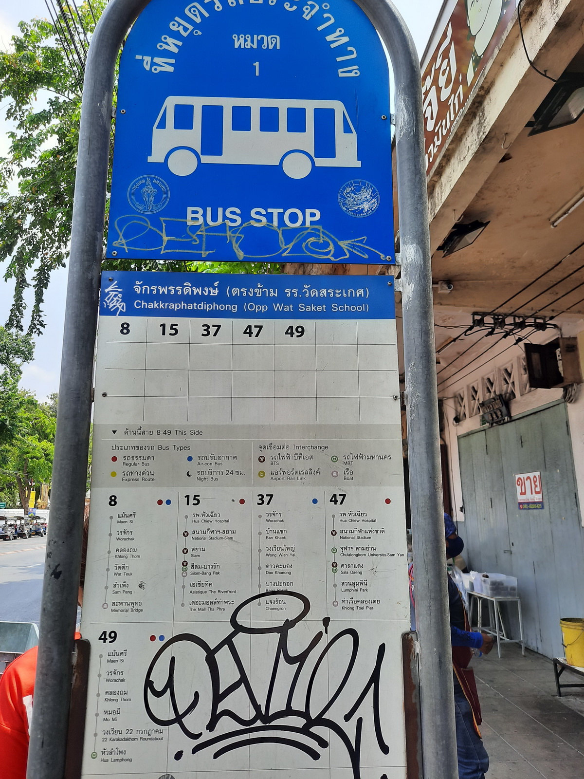 (2) ให้ขึ้นรถเมล์เบอร์ 8 (คันที่วิ่งปลายทางสะพานพุทธ) โดยรถเมล์จะจอดบริเวณก่อนถึงแยกวัดตึก
