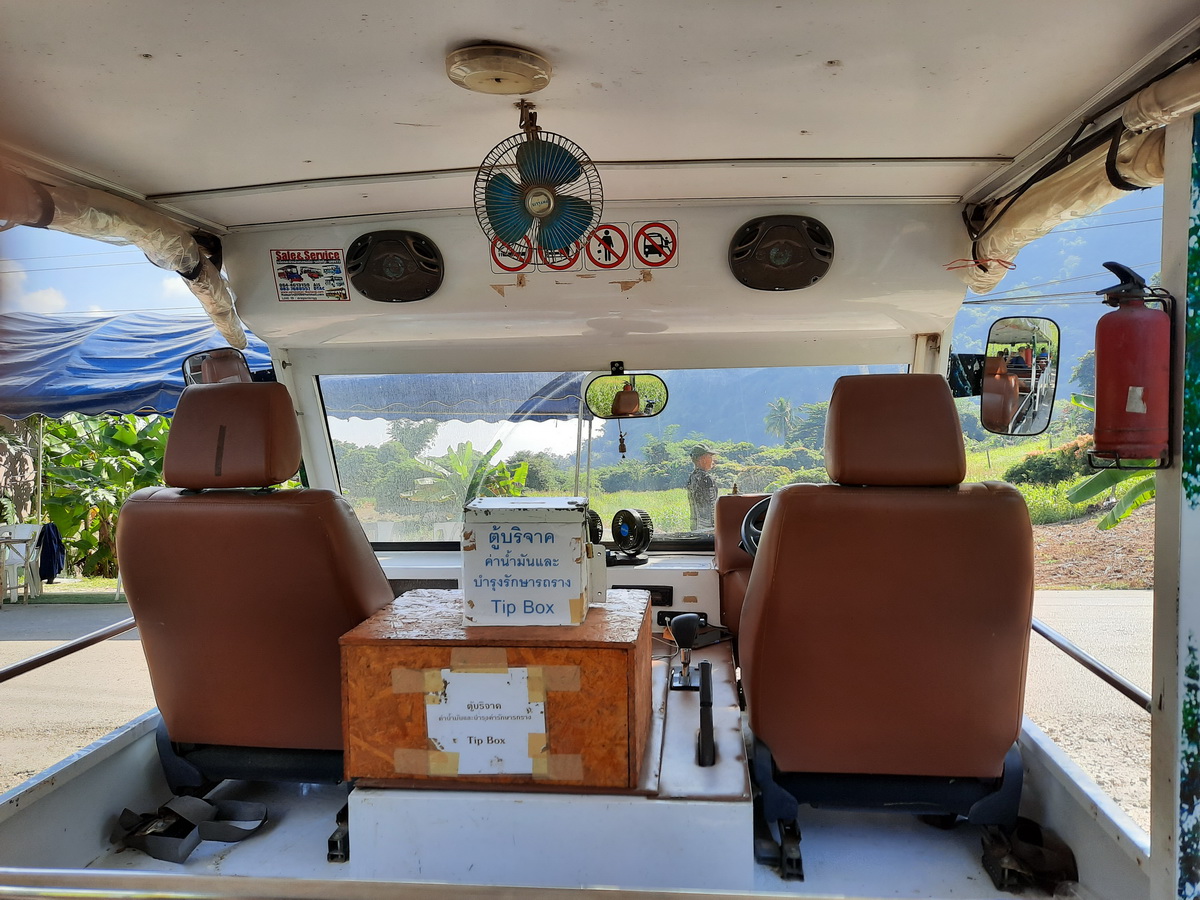 > แล้วนักท่องเที่ยวจะต้องนั่งรถสองแถวนำเที่ยวของชาวบ้าน (ราคา 20 บาท/คน) ให้ไปส่งยังจุดท่องเที่ยว 2 จุด คือ