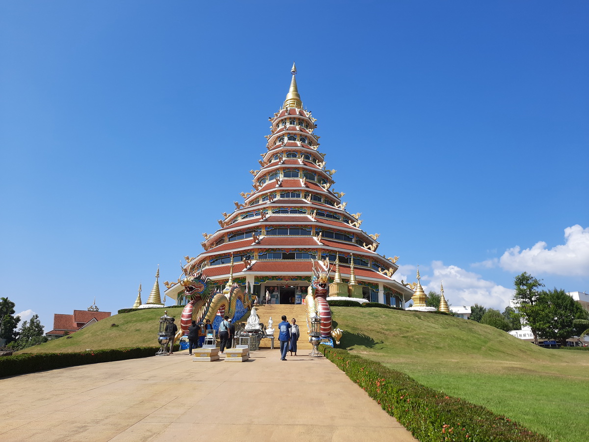 - พบโชคธรรมเจดีย์ เป็น เจดีย์ 9 ชั้น มีรูปปั้นมังกรคู่คอยปกปักษ์อยู่หน้าเจดีย์
