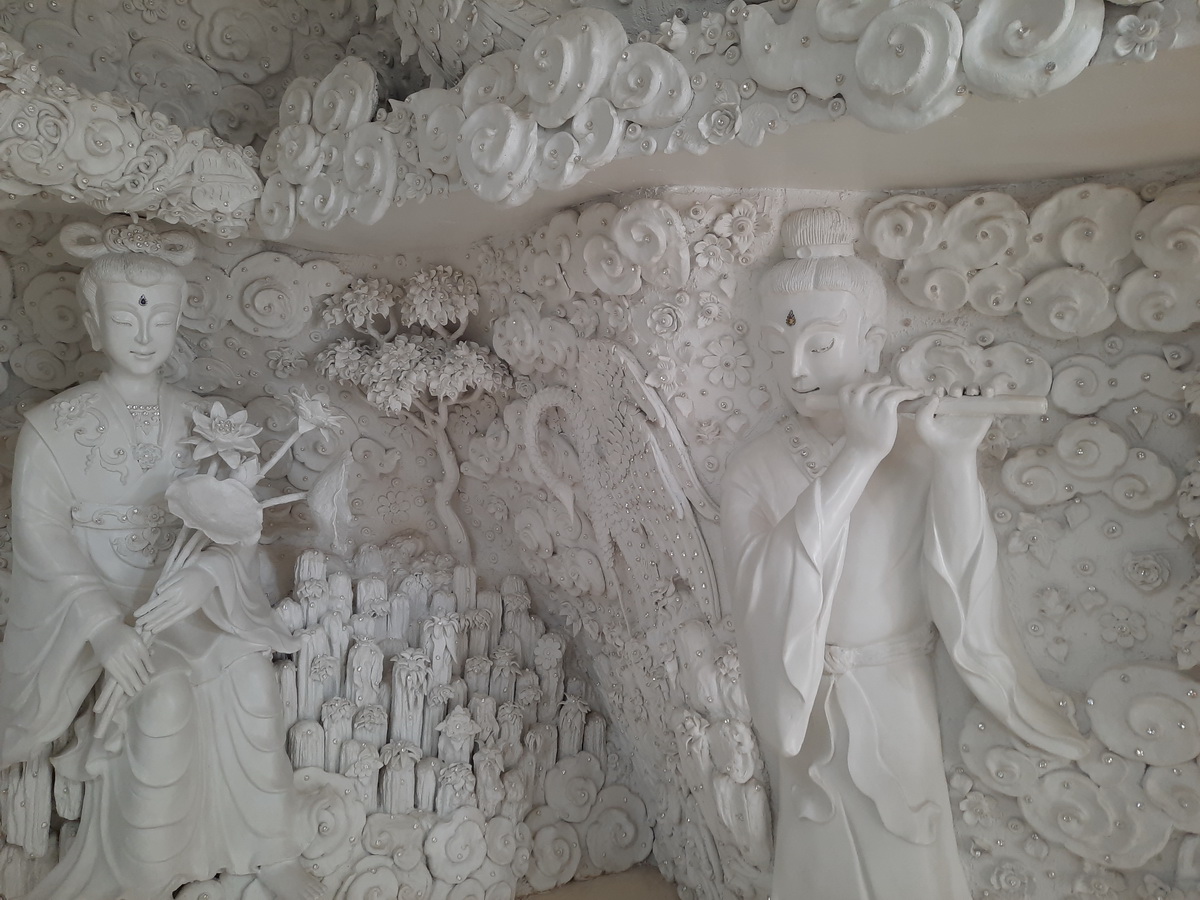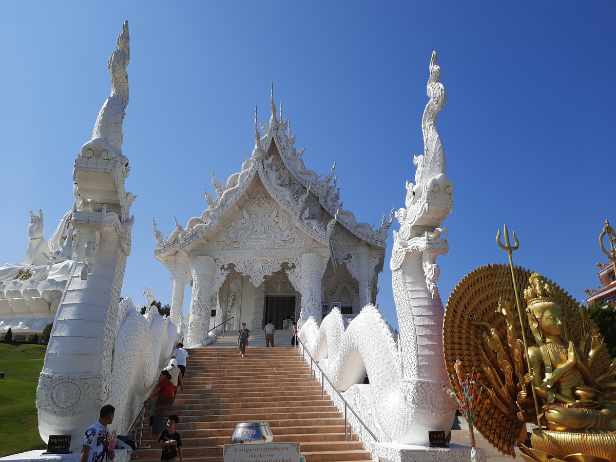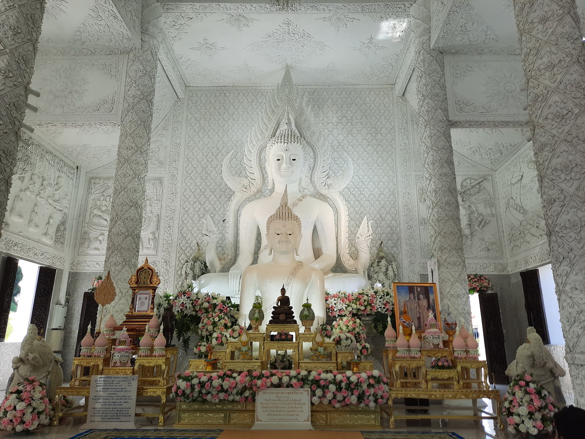จุดเด่นที่สุดของที่นี่ คือ พระอุโบสถสีขาวบริสุทธิ์ จนได้รับการขนานนามว่า วัดขาว หรือ White Temple ประดับด้วยช่อฟ้าใบระกา วิจิตรอลังการมีลวดลายอ่อนช้อยเป็นเชิงชั้นลดหลั่นลงมา หน้าบันประดับด้วยพญานาค ระยิบระยับด้วยกระจก สื่อสัญลักษณ์ทางพุทธศาสนา