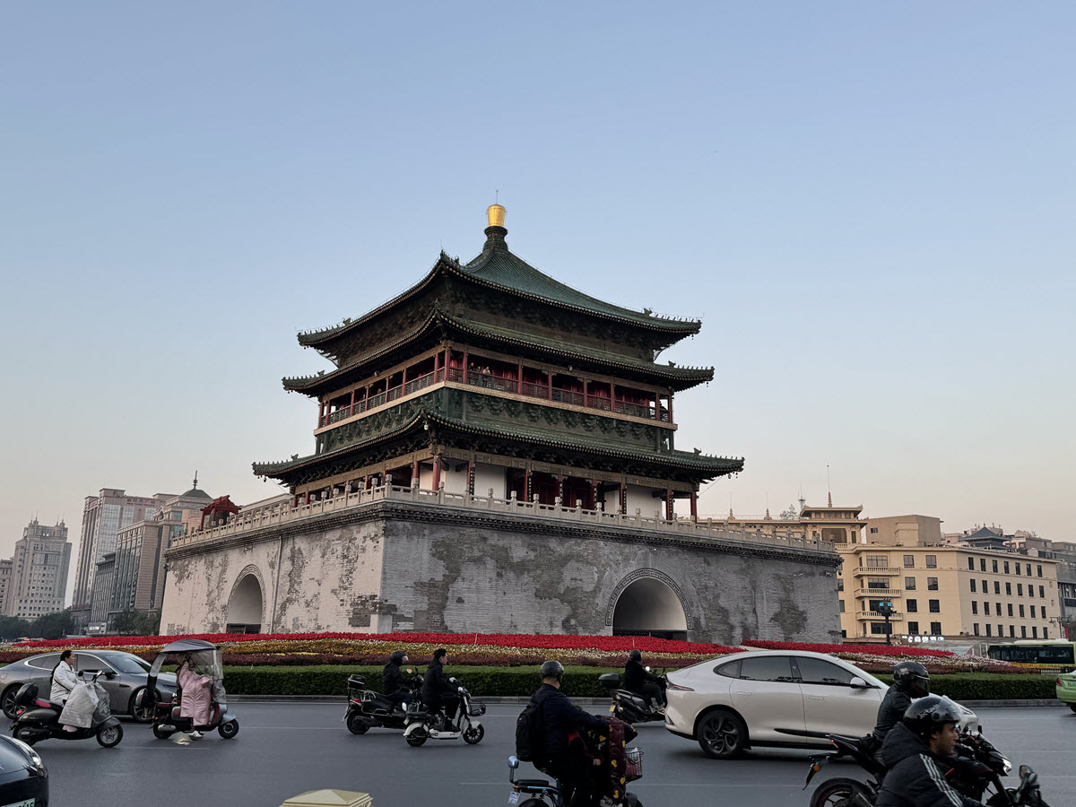 วันนี้พาเที่ยวบริเวณใจกลางเมืองซีอานกันก่อน ซึ่งจุดท่องเที่ยวหลักๆ จะอยู่บริเวณ หอระฆัง (ภาษาอังกฤษ : Xi'an Bell Tower / ภาษาจีน : จงโหลว) ซึ่งจุดนี้สามารถเดินไปเที่ยวต่อบริเวณใกล้เคียงได้ โดยจุดท่องเที่ยวหลักๆ เช่น