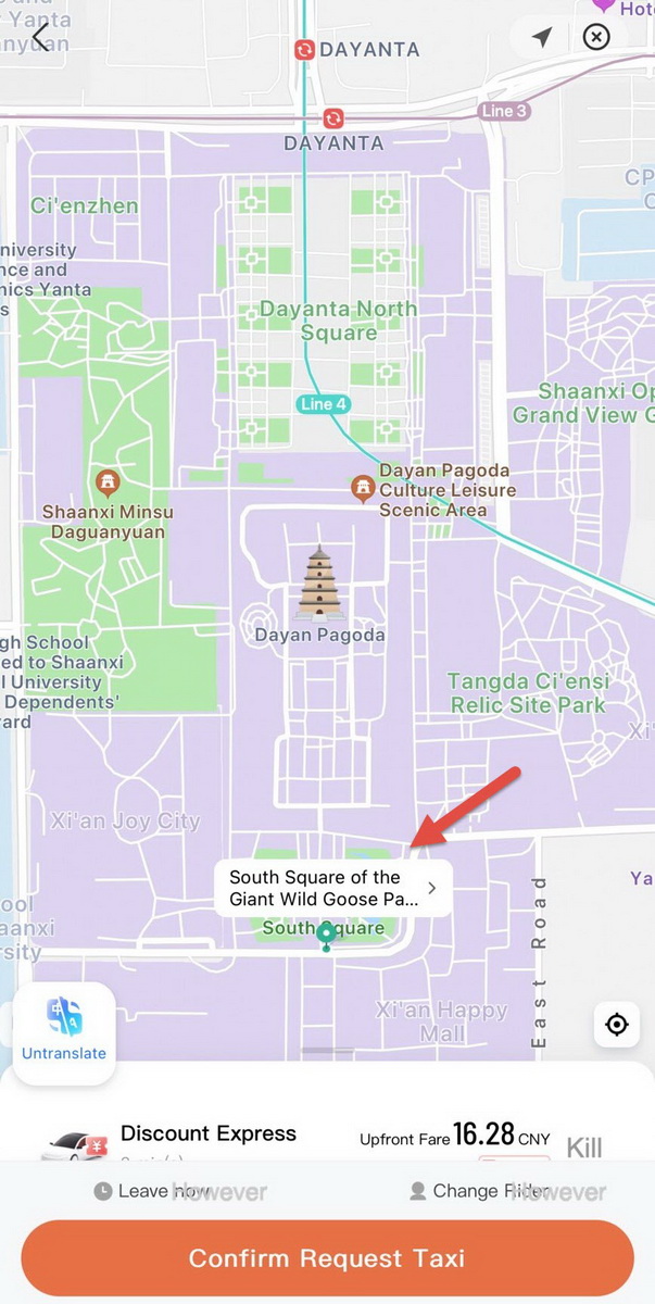 (1) รถไฟฟ้า LINE 3 ลง "สถานี Dayanta (Giant Wild Goose Pagoda)" ทางออก B , C โดยจะออกมาทางทิศเหนือของเจดีย์ห่านป่าใหญ่ ท่านจะต้องเดินลงมาซื้อตั๋วเข้าที่ประตูทางทิศใต้อีกที