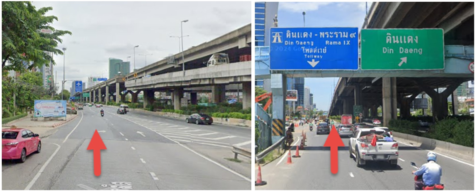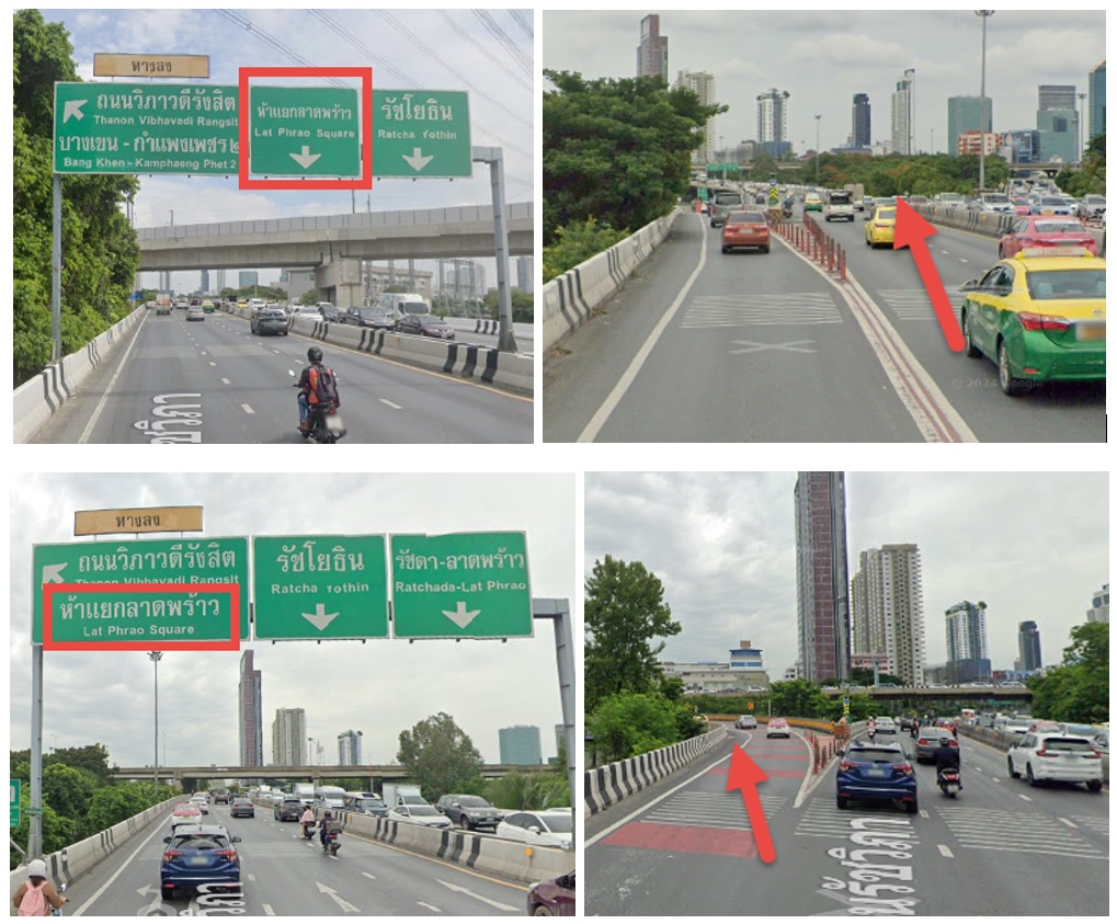 ให้ชิดซ้ายออกทางขนาน ตาม "ป้ายแคราย" ก่อน โดยพอออกมาทางขนานได้แล้ว ให้รีบขับไปอยู่เลนซ้ายสุดเลย แล้วก็เลี้ยวไปทางซ้าย ตาม "ป้ายแคราย"