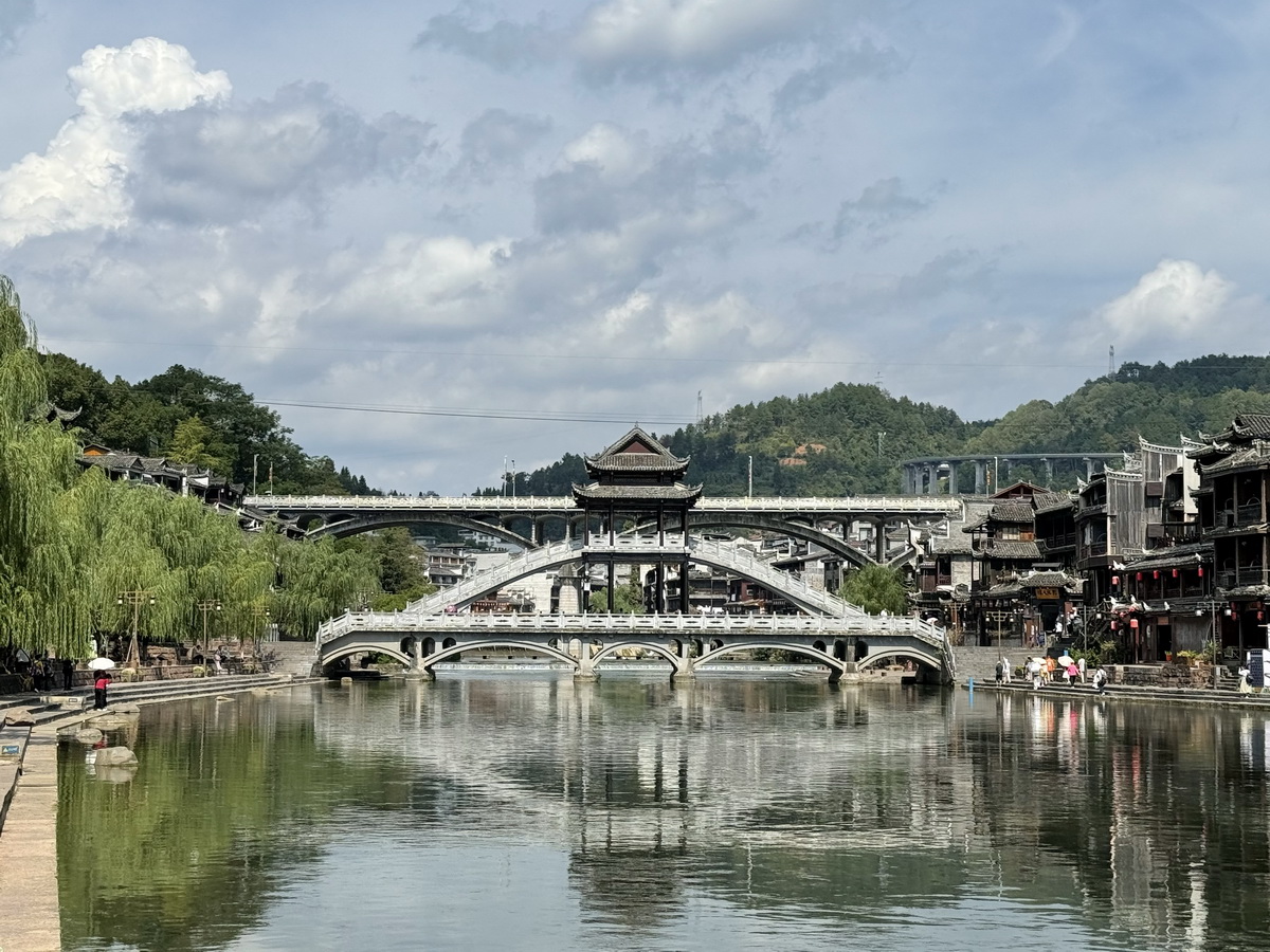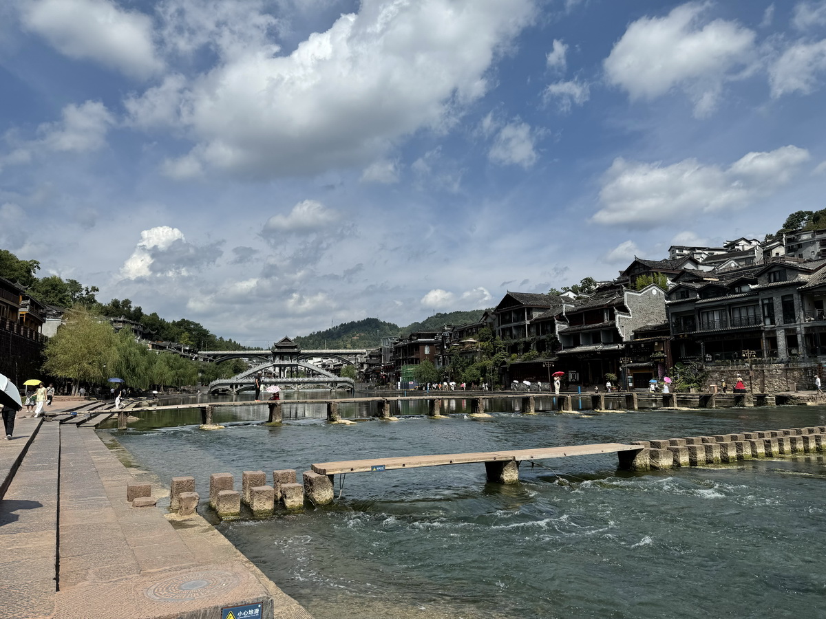 (3) สะพานหิมะ (Xueqiao) หรือ Snow Bridge : เป็นสะพานที่ถือว่าเป็นสัญลักษณ์ของเมืองโบราณเฟิ่งหวงเลย ถ้าไม่มาที่จุดนี้ถือว่ายังมาไม่ถึงนะ