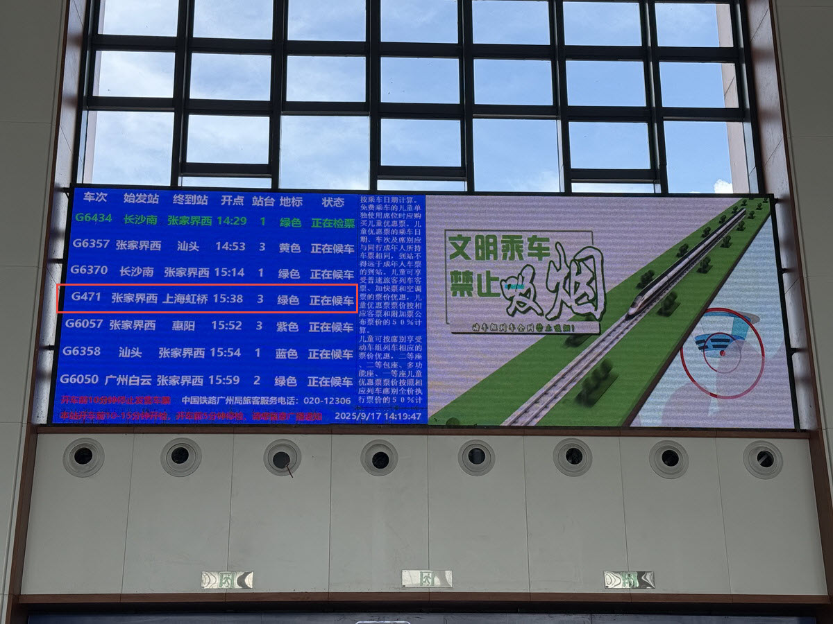 Fenghuang Gucheng (凤凰古城) ไป Changshanan (Changsha South) (长沙南) ใช้เวลาเดินทางประมาณ 2 ชั่วโมง