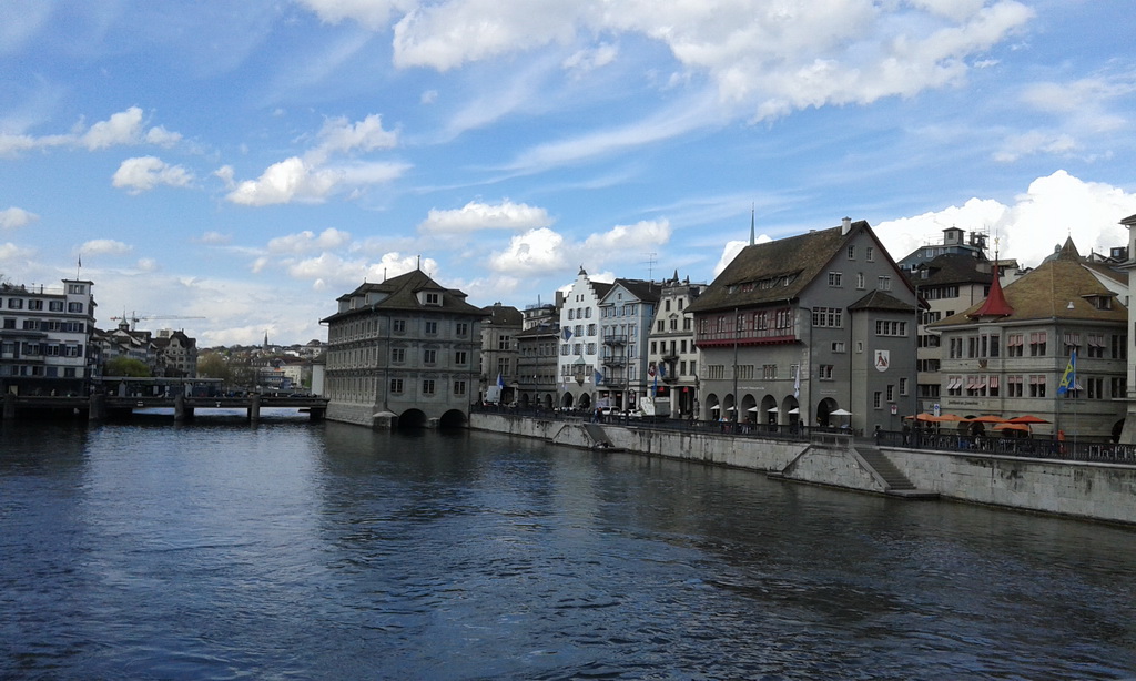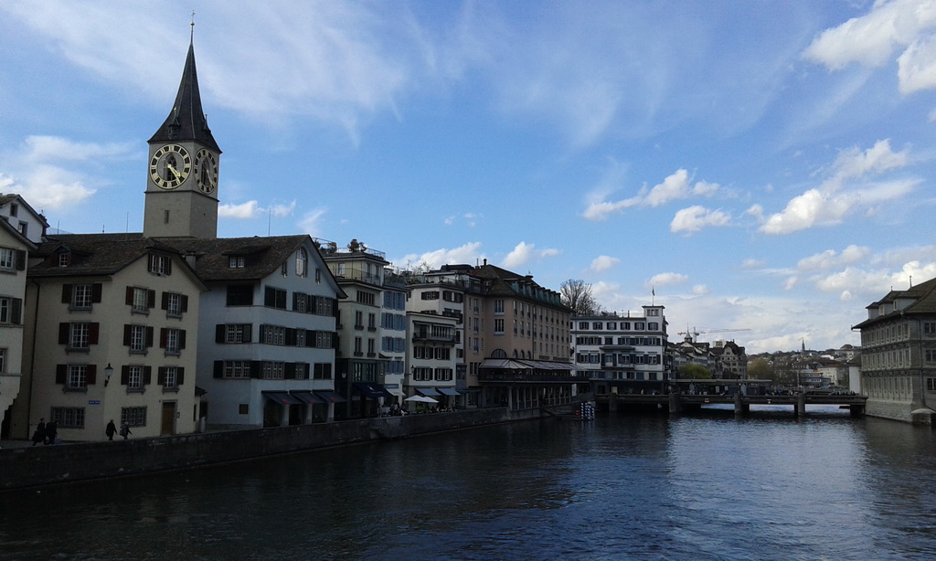 ไปที่ สะพาน Munster Brucke เพื่อถ่ายรูปเก็บวิวทั้งสองฝั่งของแม่น้ำ Limmat โดยมีฉากหลักของเมือง Zurich
