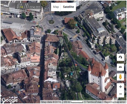 จากสถานี Thun ให้นั่ง รถบัส เบอร์ 1 ตรง Platform ที่ 3 (Direction : Steffisburg/Flühli) ลงที่ป้าย Berntor ซึ่งจะอยู่แถววงเวียน แล้วก็เดินไปต่อเอา (ขากลับนั่งรถบัสคันเดิม Direction : Spiez, Bahnhof