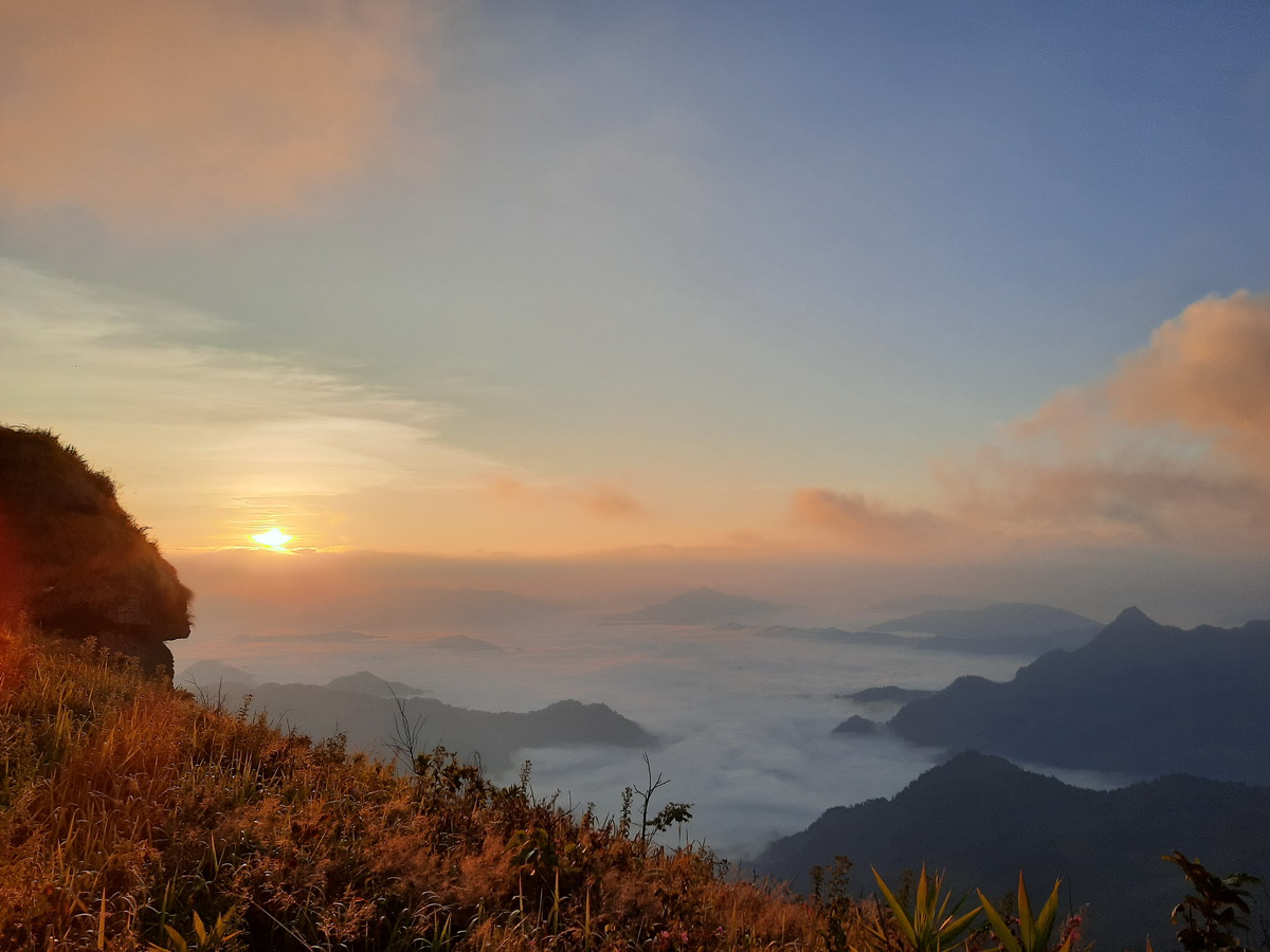 บรรยากาศบริเวณยอดภูชี้ฟ้า เวลาประมาณ 6:00 น. พระอาทิตย์กำลังขึ้นเลย