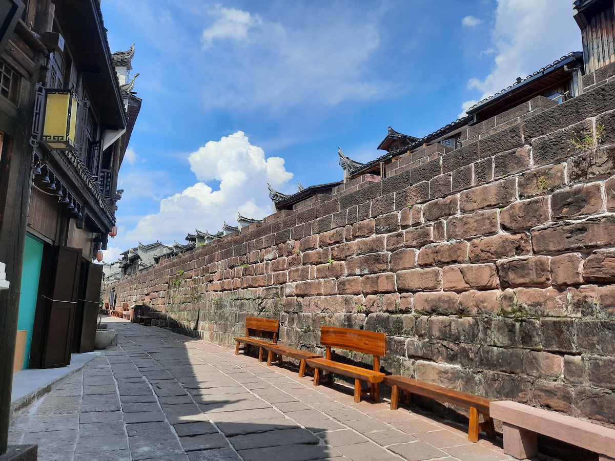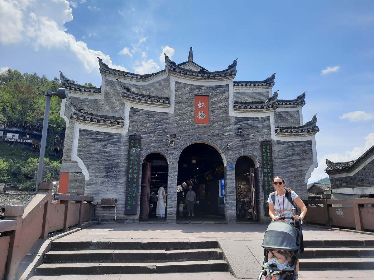(5) สะพานลม (Fengqiao) หรือ Wind Bridge : เป็นสะพานไม้โบราณที่มีหลังคาและเป็นจุดชมวิวสวยงามริมแม่น้ำถัวเจียง (Tuojiang River)